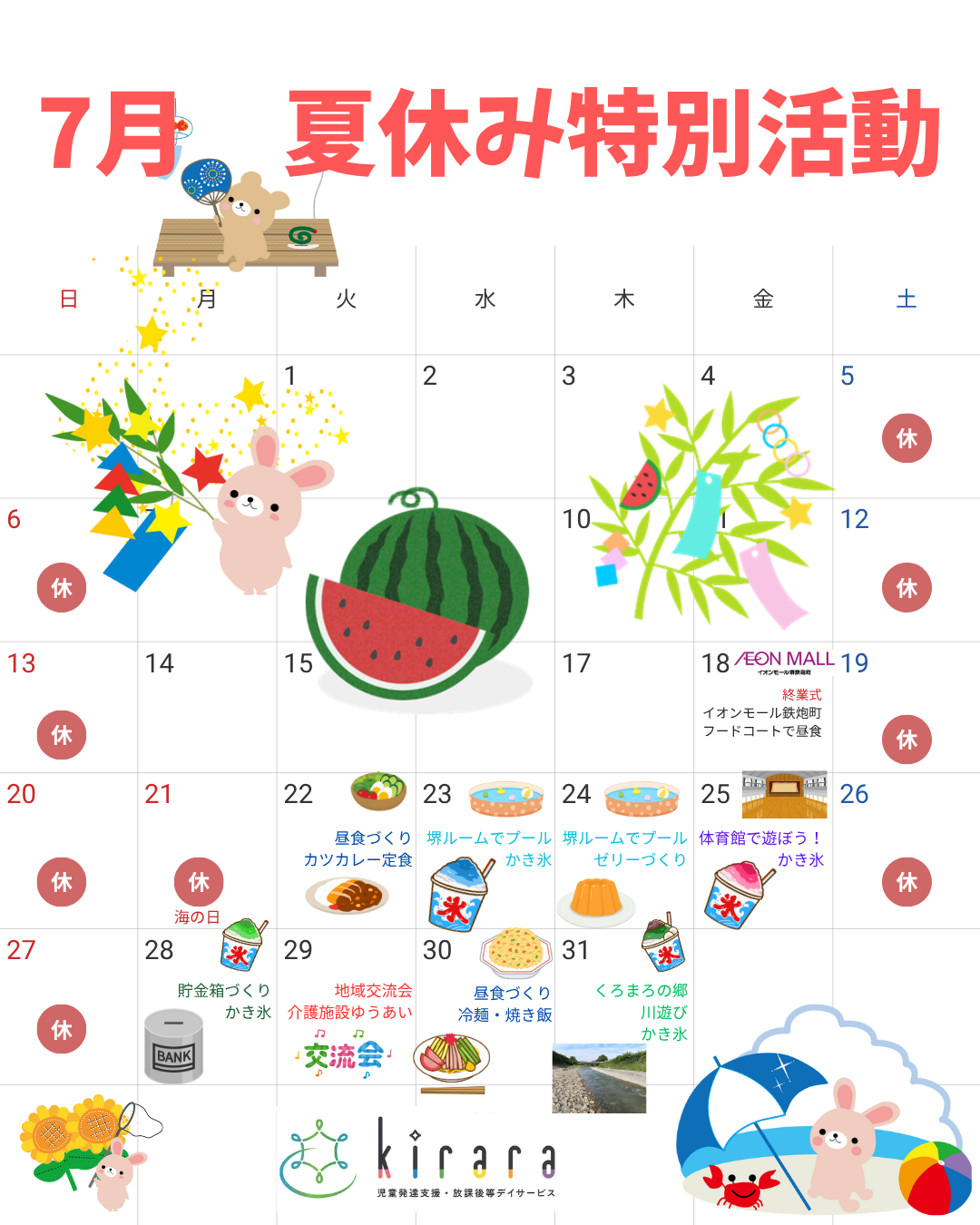 今年も、お出かけや昼食づくり、プールなどたくさん企画しています。
